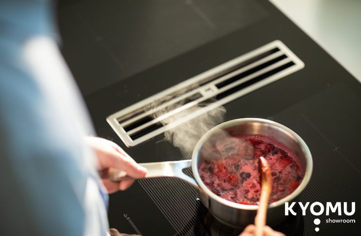Las placas de inducción con extractor integrado están definidas específicamente para eliminar el vapor, el humo y los olores de la cocina directamente de la fuente ya que están integrados en la propia placa de inducción. La combinación de las tecnologías de extracción e inducción, en comparación con los sistemas tradicionales, mejora la funcionalidad y la comodidad en la cocina eliminando la necesidad de un extractor independiente y creando así un espacio más abierto. Asimismo, la continuidad de la superficie, junto con la optimización del espacio, las convierte en una solución ideal para cocinas de isla, aportando un diseño moderno que se adapta perfectamente a cualquier estilo.