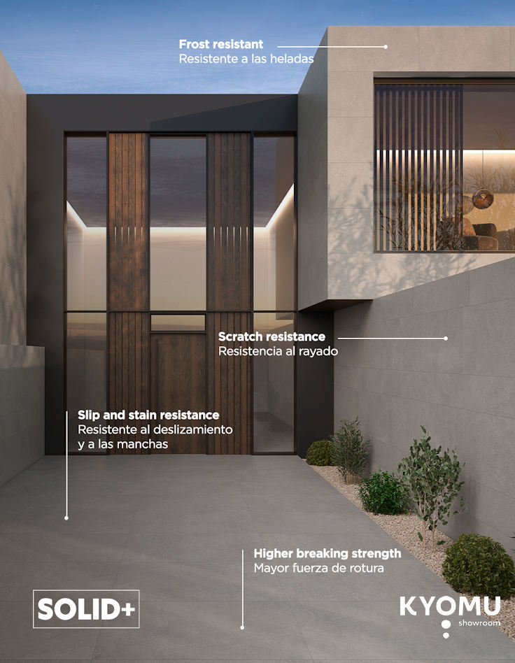 SOLID+, el porcelánico técnico de UNDEFASA, es un material único en el mercado cuyas prestaciones . No se raya, se limpia con facilidad, es resistente al fuego y a episodios de climatología extrema. Y conserva su aspecto original a lo largo del tiempo.