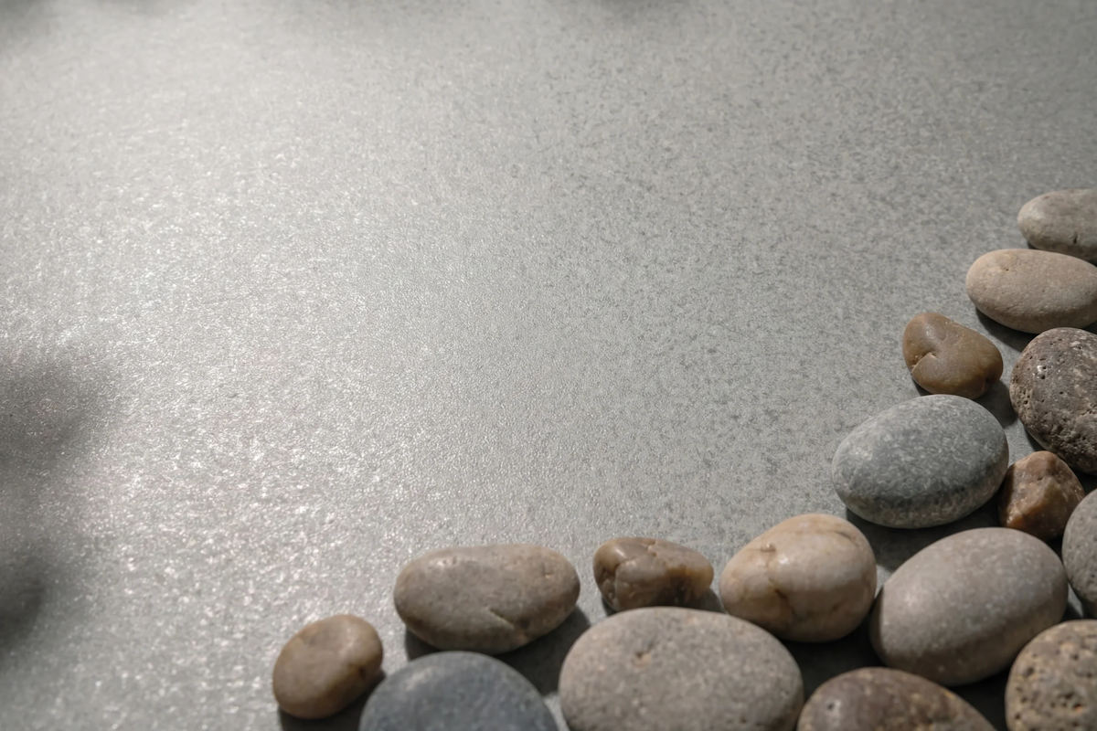 Con tres tonos neutros —perla, gris y arena— permite crear ambientes elegantes y equilibrados, tanto en interiores como en exteriores.